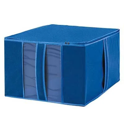 Материал/состав: спанбонд, плотность 70гр/квм, пленка ПВХ, двустор молния, картон; Размер: 60х50х35см; Индивидуальная упаковка: п/э пакет с европодвесом и цветным вкладышем; Цвет: синий; Идеально подойдет для глубокого шкафа. Предохраняет Ваши вещи от загрязнения и преждевременного старения. Закрывается крышкой на двустор молнии, 2 удобные ручки, окошко ПВХ в передней стенке.