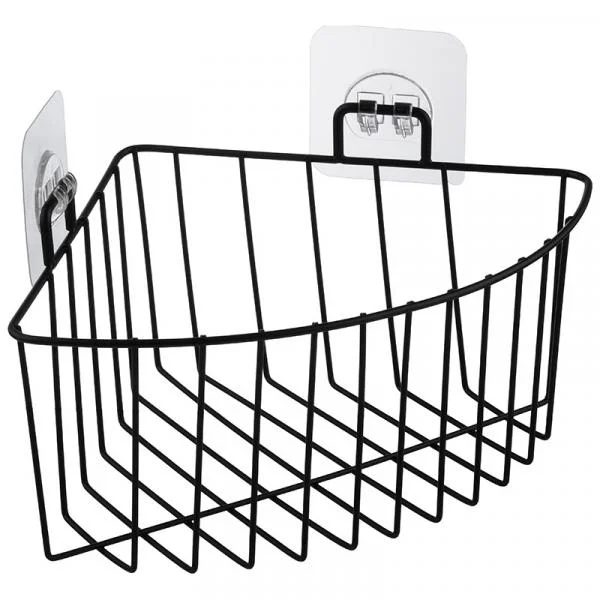 Корзинка для ванной комнаты угловая Настенное крепление (самоклеящаяся основа, 2 крючка) Размер корзинки: 18*18*9,5 см. Размер общий: 18,5*18,5*14,5 см. Максимальная нагрузка: 4 кг. Материал: металл с порошковой окраской, ПВХ. Подвесная корзинка для ванной комнаты изготовлена из металла с порошковой окраской, который надежно защищен от коррозии. Угловая корзинка отлично подойдет для хранения тюбиков, гелей для душа, шампуней, мочалок и прочего. Изделие крепится к стене с помощью надежных крючков на самоклеящейся основе.