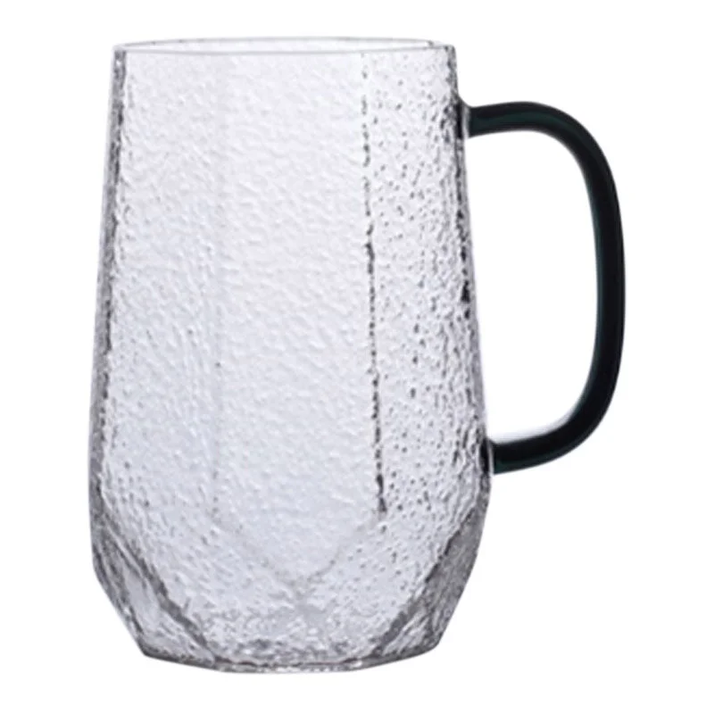 Кружка AROMA 430 мл из боросиликатного рельефного стекла, с гранями, с ручкой из цветного стекла 106477-SK