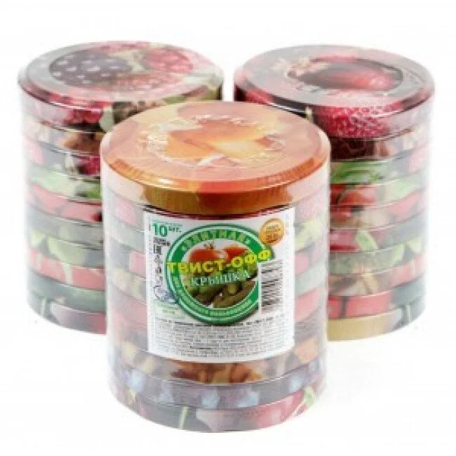 Материал/состав: жесть, ПВХ Диаметр крышки: 100 мм В наборе: 10 шт. Покрытие крышек: литография (рисунок + лак) Индивидуальная упаковка: термоусадочная пленка Предназначенны для укупоривания стеклянных банок с венчиком горловины типа III-100 по технологии термовакуумной укупорки. Эта технология гарантирует высокое качество продуктов при длительных сроках хранения. Крышка твист-офф изготовлена из штампованной, лакированной пищевыми штамповочными лаками и эмалями белой жести, снабжена упорами для завинчивания и внутренним уплотнением из материала на основе ПВХ. Наружная поверхность крышек оформлена красочными рисунками. Крышки идеальны для домашнего консервирования.