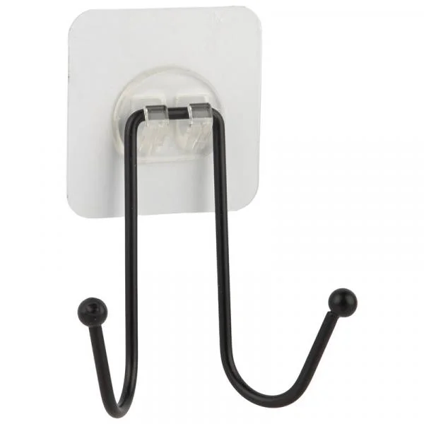 Крючок двойной Размер крючка: 8*4*8,5 см. Общий размер: 8*4*11,5 см. Цвет: черный. Крепление: крючок на самоклеящейся основе. Материал: металл с порошковой окраской, ПВХ.