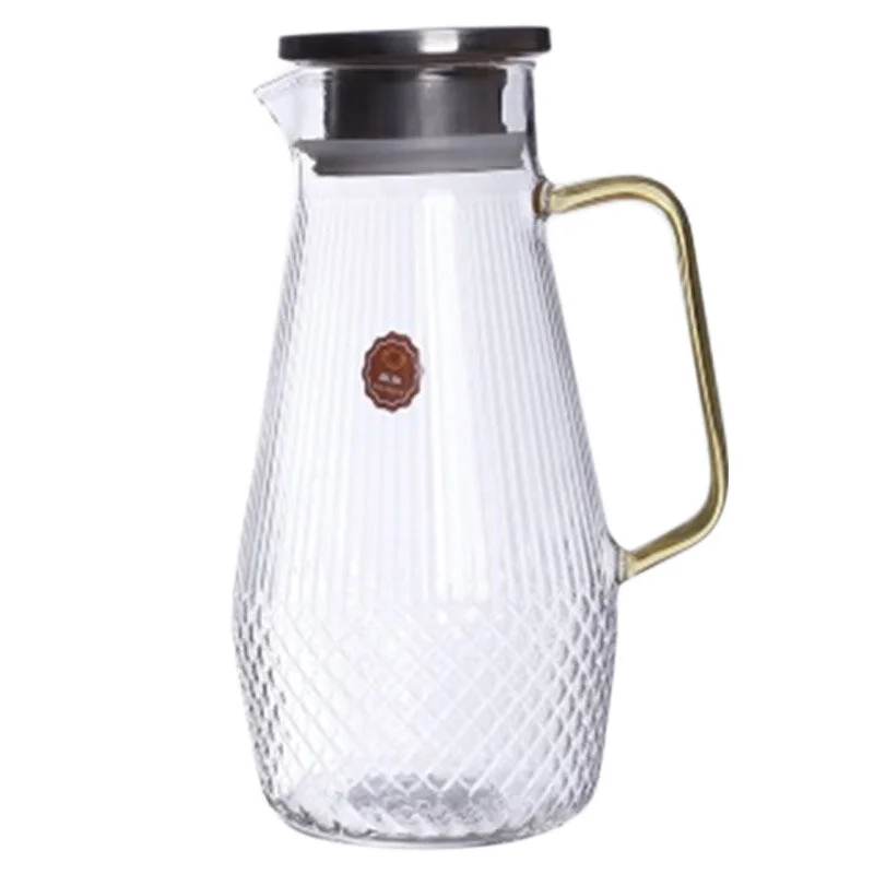 Кувшин AROMA 1,6 л из боросиликатного рельефного стекла с крышкой-фильтром из нерж стали, с ручкой из цветного стекла. Материал: термостойкое боросиликатное стекло+304 нерж сталь+силикон. Упаковка: цветная коробка + пуз пленка + белая бумага. 4?10-6 - коэффициент линейного расширения.