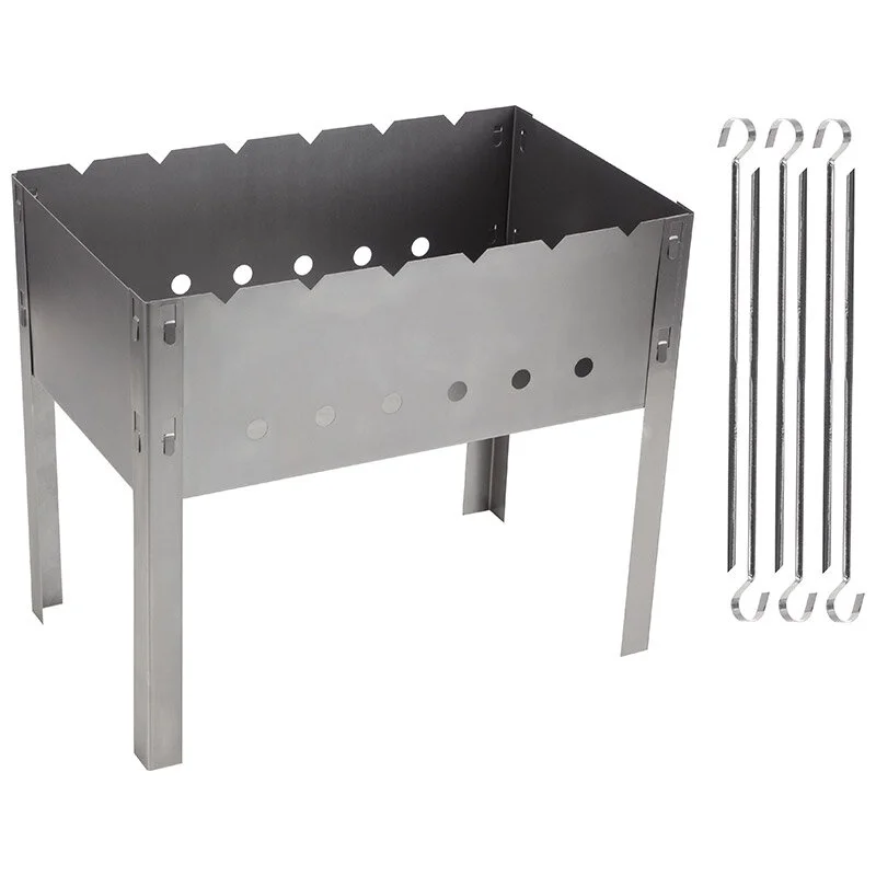 Решетки, мангалы, уголь для гриля, барбекю » Mallony Мангал ECOS сборно-разборный 400х240х350мм, 0,50мм с 6 шампурами. 008480-SK Мангал ECOS сборно-разборный 400х240х350мм, 0,50мм с 6 шампурами. 008480-SK Производитель: MALLONYМатериал : стальТип: мангалНаличие: На пятницуБонусы: 6 ₽ Код товара: 56413 Цена: 596 ₽ В корзину Описание Размер мангала в сборе: 400х240х350мм; Материал: х/к сталь, толщина 0,50мм+/-10%; Размер шампура: 350*10мм; Материал шампуров: нержавеющая сталь 0,5мм; Количество шампуров: 6шт. угловые, без витка; Инд. упаковка: термоусадочная пленка, стикер; Поделитесь ссылкой: