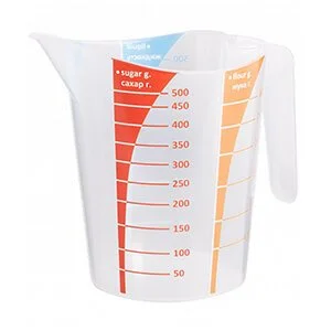 Имеет мерную таблицу, удобный носик и ручку для выливания жидкостей.