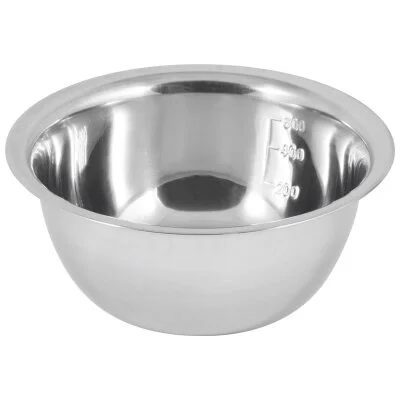 Миска из нержавеющей стали зеркальная полировка внутри/снаружи толщина стали: 0,3 мм однослойное дно отметки литража диаметр 16 см*6,9 см объем - 0,8 л, тм Mallony Упаковка: стикер, пакет