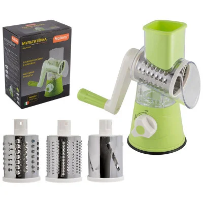 Мультитерка похожа на обычную мясорубку, но таковой не является. При помощи этого незаменимого прибора можно нарезать овощи для салата. Их идеально ровная форма поразит гостей. Вакуумная присоска в основании надежно фиксирует терку на рабочей поверхности. С помощью мультитерки можно: - шинковать капусту для салата, делать тонкие пластины из картофеля или яблок для чипсов - натирать шоколад и орехи, готовить панировку - нарезать овощи ломтиками В комплект входят: - корпус мультитерки - 3 насадки (7*7*11 см) - толкатель Размер: 24*26*11 см Материал: ABS пластмасса, полистирол, нержавеющая сталь (430)