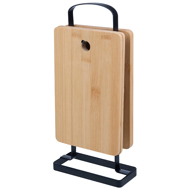 Набор из 4 разделочных досок, Foresta di bambù, из бамбука на подставке, размер:15*6,5*32 см Материал: бамбук, металл. Размер доски: 14*22 см. Толщина: 0,6 см. Термоусадка+цветной вкладыш.