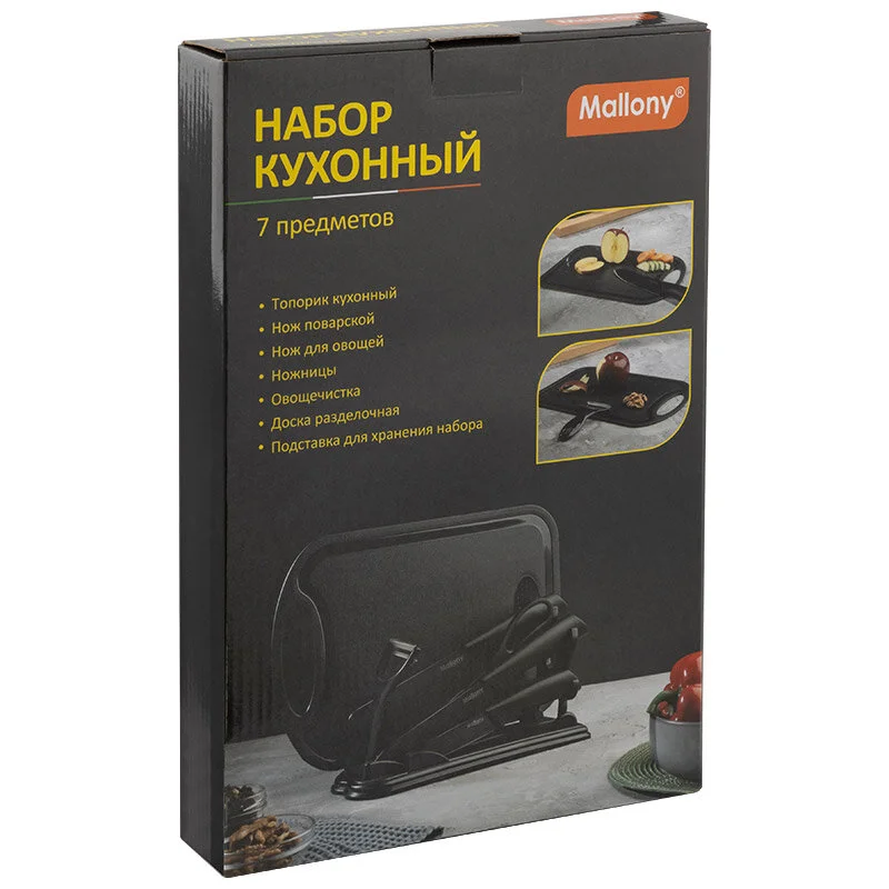Набор кухонный COLTELLO NERO (7 предметов): 3 ножа, ножницы, овощечист, разд. доска,подст. 310890-SK