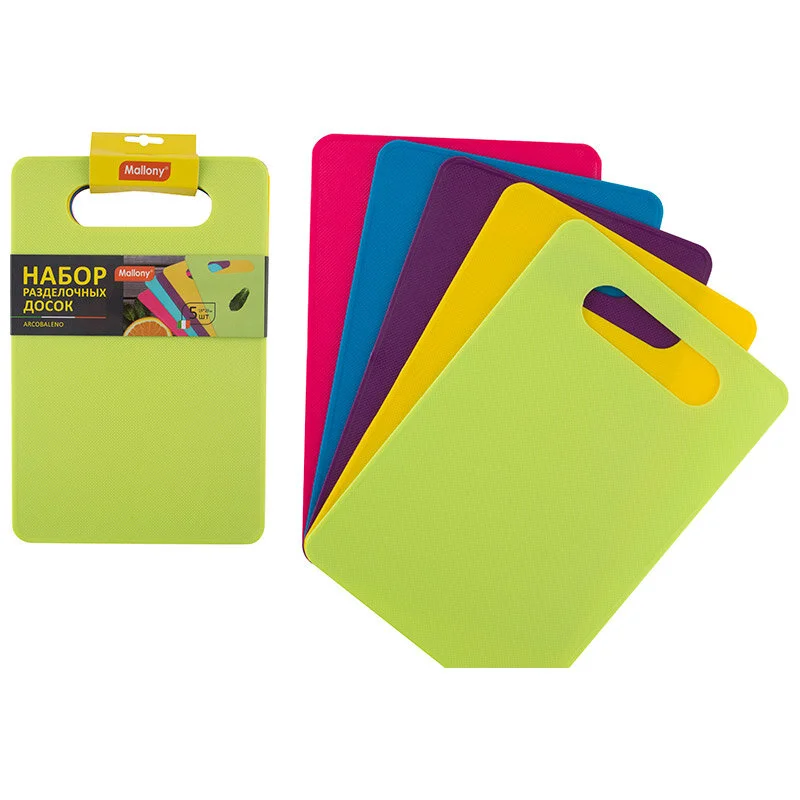 Доски разделочные » MALLONY Набор разделочных досок ARCOBALENO, р-р 19*29 см (5 шт в наборе) 985242-SK Набор разделочных досок ARCOBALENO, р-р 19*29 см (5 шт в наборе) 985242-SK Производитель: MALLONYМатериал: пластикНаличие: На пятницуБонусы: 8 ₽ Код товара: 53409 Цена: 405 ₽ В корзину Описание Набор из пяти разноцветных разделочных досок Размер: 19*29 см Толщина: 2,4 мм Вес 1 шт: 71 гр Материал: пластмасса Можно мыть в посудомоечной машине Поделитесь ссылкой: