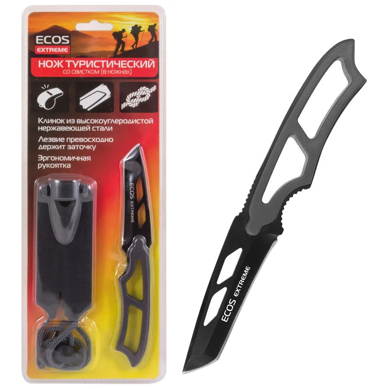 Нож туристический со свистком (в ножнах) EX-SW-B01GR ECOS серый. 325125-SK