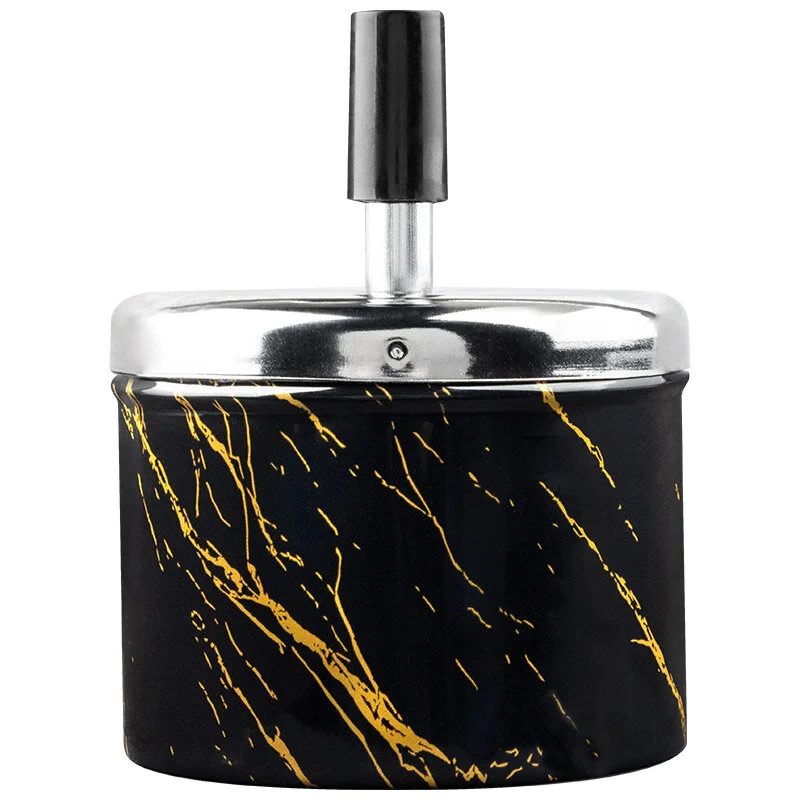 Пепельница бездымная, Domestico, металлическая, размер: 9*12 см, дизайн: чёрный мрамор. Форма: круглая. Материал: жесть, хромир металл, пластмасса. Размер: 9*12 см. Cтикер+пакет+коробка с ячейками.