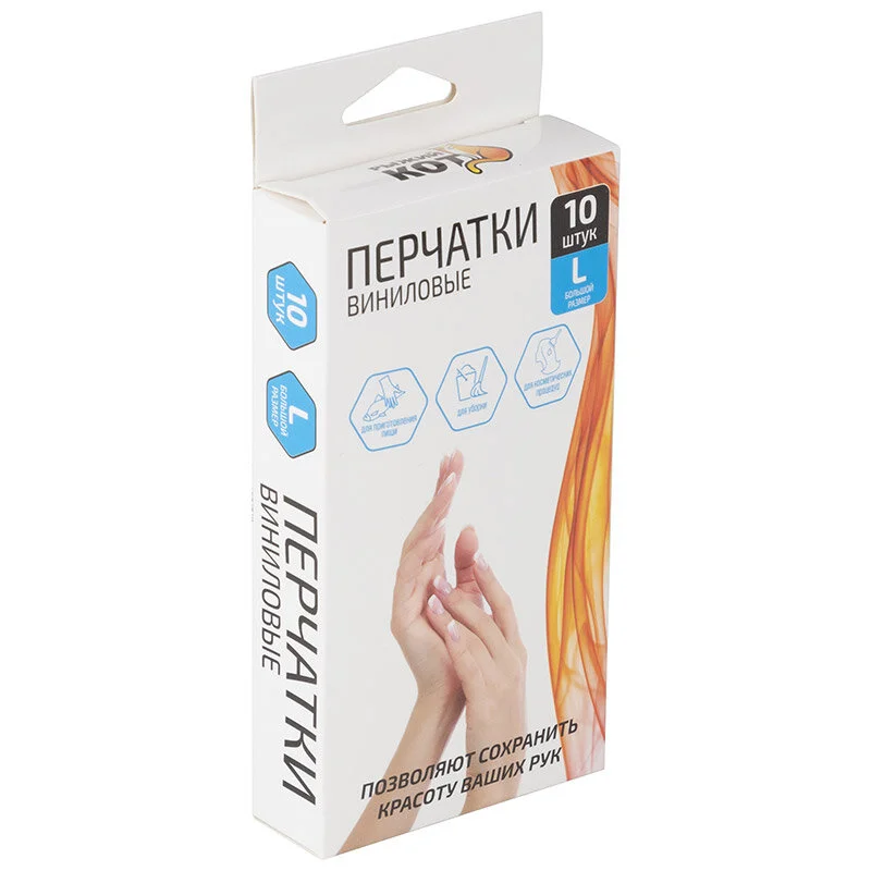 Перчатки виниловые, неопудренные, размер L, 10шт. 008342-SK