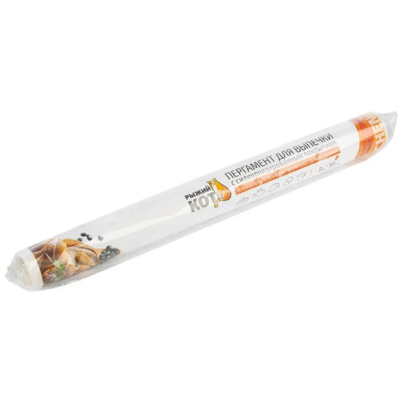 Бумага для выпечки, пергамент силиконизированный Размер: 8м*38см Материал: целлюлоза (пищевой пергамент) с двусторонней силиконизацией (пищевым силиконом) Упаковка: ПВХ пакет Профессиональная силиконизированная бумага для выпечки. Также идеально подходит для жарки, раскатывания теста без использования муки, заморозки, а также в качестве оберточной бумаги. Антипригарное покрытие из пищевого силикона позволяет готовить без дополнительного смазывания маслом и исключает пригорание/прилипания продуктов в процессе готовки. Безопасна при контакте с пищевыми продуктами. Жиростойкая. Выдерживает температуру до 200 С.