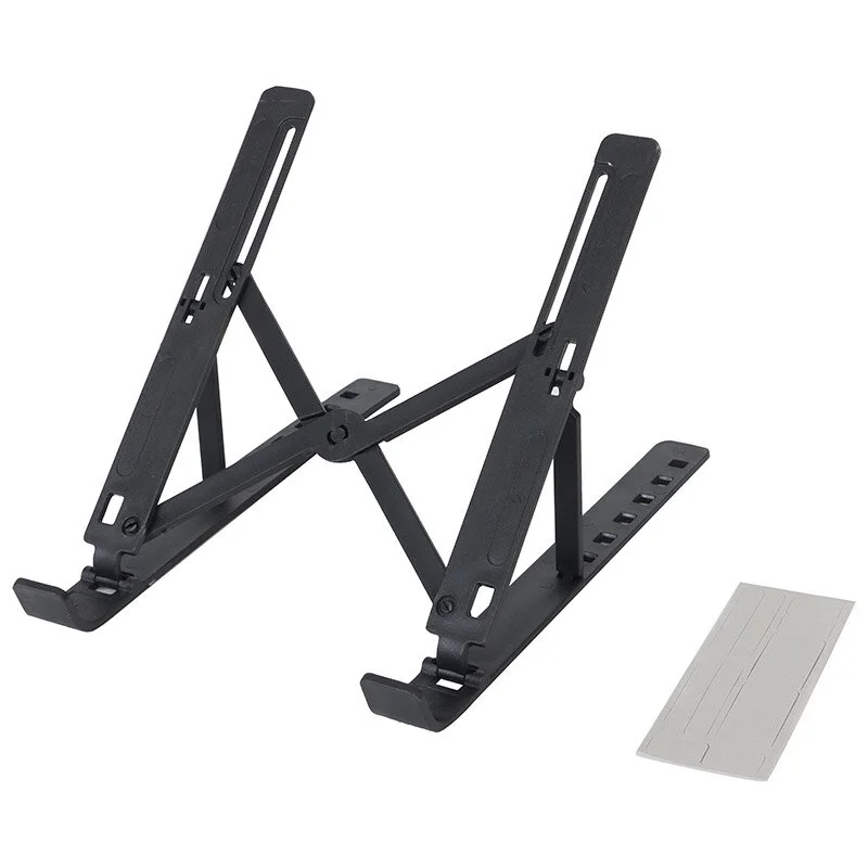 Размер в разобранном виде: 16 х 23 х 19,5 см Материал: полипропилен, ЭВА Регулировка угла наклона Подставка является устойчивой и обеспечивает свободную циркуляцию воздуха Удобно складывается, легко брать с собой Упаковка: пакет с подвесом, стикер