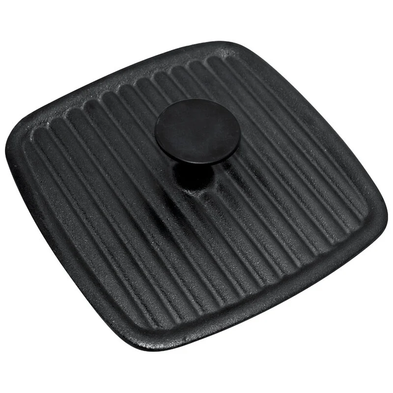 Пресс для гриля чугунный с бакелитовой ручкой, серия - PRESSA, квадратной формы, р-р 21*21 см Вес без упаковки - 1,56 кг Толщина 5.8 мм Высота с ручкой - 5,4 см Упаковка: цветной рукав + пакет Нельзя мыть в посудомоечной машине. Правила по уходу указаны на упаковке товара.