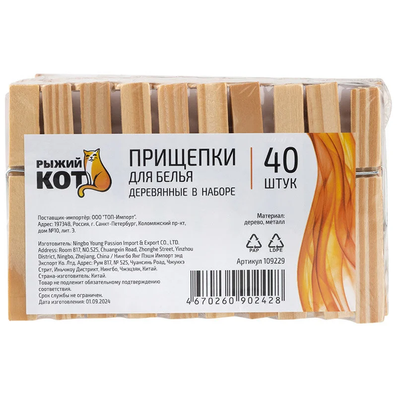 Цвет: натуральный древесный Материал: дерево, металл Размер прищепки: 7*1*1,3 см Размер набора: 75*13*8 см Упаковка: пленка, стикер
