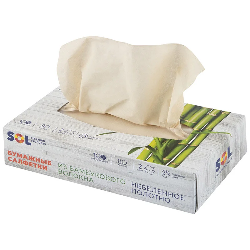 Салфетки бумажные бамбуковые SOL 2-х сл., 80 шт. 109371-SK