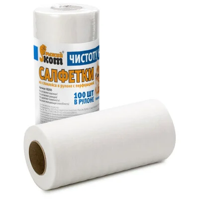 Салфетки из спанлейса в рулоне с перфорацией Состав: 70% вискоза, 30% полиэстер. Плотность: 40 г/м2. Размер: 25х30 см. В рулоне - 100 штук. Упаковка: термоусадка с цветной этикеткой Универсальные салфетки из спанлейса белого цвета подходят для уборки и мытья любых поверхностей. Они отличаются повышенной впитывающей способностью, обладают антистатическими и полирующими свойствами, а также удерживают грязь и пыль.