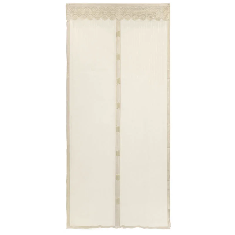 Сетка антимоскитная на магнитах "Капутомоскито" Размеры: 100*210 см Материал изготовления: полиэстер 100%, плотность 45 гр/кв. метр Цвет: бежевый В комплект входят: -2 створки москитной сетки с 9 парами магнитов, - декоративный ламбрекен, - кнопки (10 шт.), - двусторонний скотч (10 шт.) для крепления к дверному проему Упаковка: цветная коробка После прохода человека через дверной проем сетка полностью плотно смыкается.