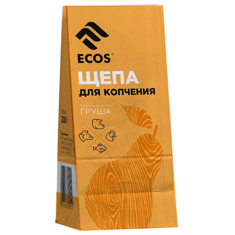 Назначение: для копчения рыбы, птицы, сыра или овощей. Матераил: дерево груши Вес: 200гр. При влажности 14-16% Фракции: 7-12мм. Упаковка: бумажный пакет. Инструкция по применению: смоченную водой щепу разложить по дну коптильни. Подготовленный (подсоленный или заправленный приправами) продукт выложить на решетку. Закрыть крышку коптильни и поставить коптильню на огонь. Длительность приготовления от 25 до 50 минут в зависимости от вида продукта и температуры.