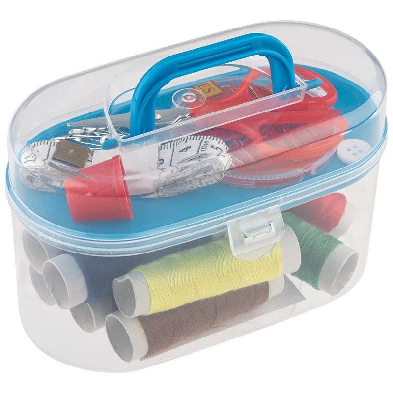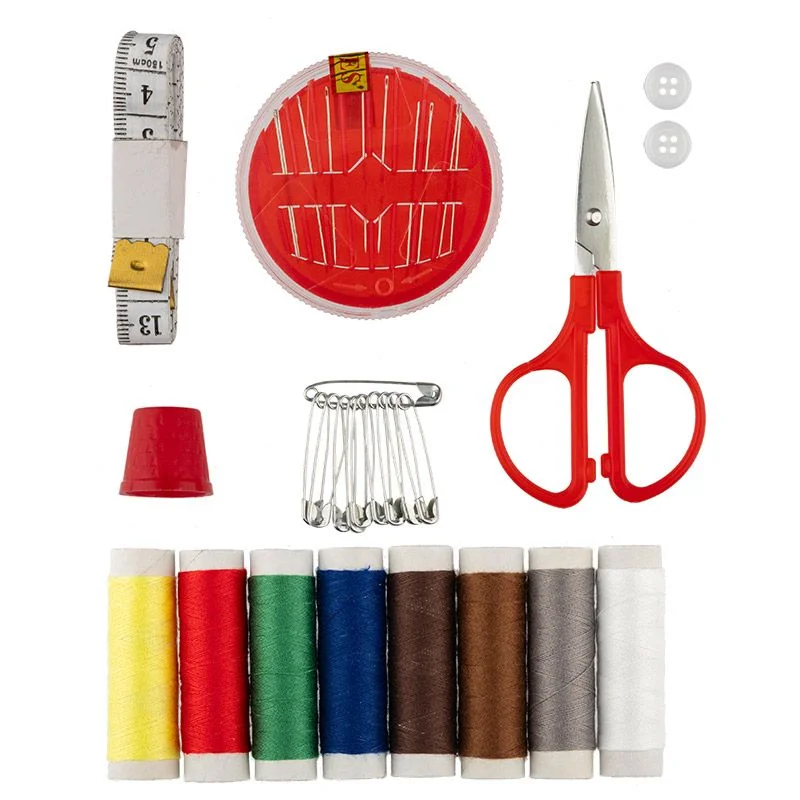 Состав набора: - катушки с нитками микс цветов - 8 шт - иголки - 10 шт - мини-ножницы - сантиметровая лента - наперсток - булавки- 10 шт - пуговицы - 2 шт - пластиковый бокс Упаковка: пакет, стикер Материалы: полиэстер, бумага, сталь, полипропилен, ПВХ, пластмасса Набор для шитья - полезная вещь в дороге и хозяйстве.
