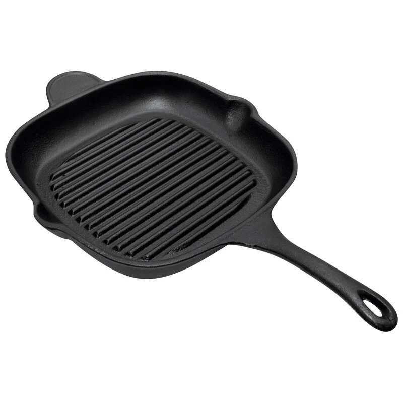 Сковорода-гриль чугунная с чугунной ручкой, серия - PADELLA, квадратной формы, р-р 28*28 см, подходит пресс 23*23 см (в комплект не входит) Размер с ручкой - 51,5*31*7,5 см Упаковка: цветной рукав + пакет толщина дна: 4 мм, толщина стенок: 3,8 мм, высота бортов 4,8 см. Нельзя мыть в посудомоечной машине. Подходит для всех типов плит. Правила по уходу указаны на упаковке товара.