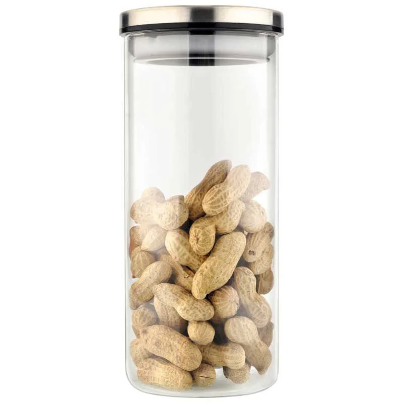 Стеклянная банка для сыпучих продуктов с крышкой из нерж стали, (прокладка из силикона) линейка - OCEANO, объем: 1,3 л, тм Mallony, размер: 10,1*21,1 см Толщина стекла - 2,2 мм Банку без крышки можно мыть в посудомоечной машине. Материалы: боросиликатное стекло, нерж сталь, силикон, пластмасса. Коэффициэнт линейного расширения стекла - (3.3?0.1)?10-6/K Упаковка: цветная коробка, пузырчая пленка, крышка в доп пакете.