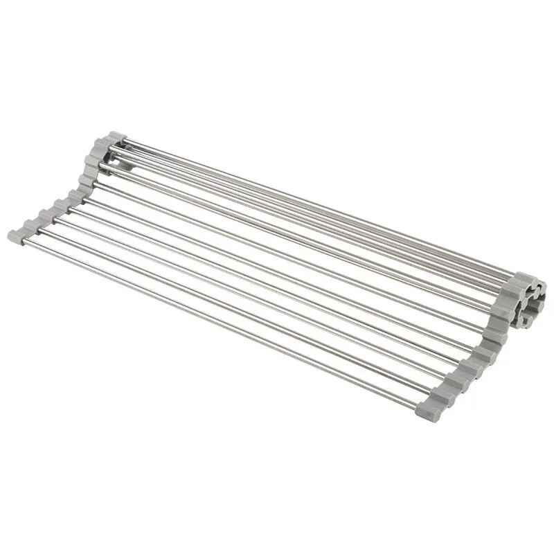 Уникальная многофункциональная сушилка. С ее помощью можно легко и быстро организовать место для сушки посуды, фруктов и овощей непосредственно над раковиной. Сушилку можно использовать в качестве подставки под горячее. Выполнена из нержавеющей стали. Занимает минимум места при хранении. Отличное решение для небольших кухонь! Размер: 28*47 см Цвет: серый 15 трубок толщиной 5 мм и длиной 47 см Материал: нержавеющая сталь (201), ПВХ
