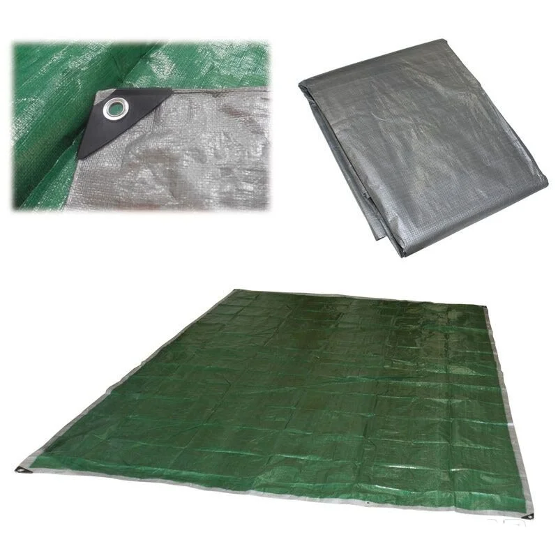 Тент универсальный хозяйственный (тарпаулин) Материал - полиэтилен, ткань из плоских нитей, размер 4*4 м,плотность 100 гр/м2 Тент из особо прочного полиэтилена Двухцветный серебристо-зеленый Алюминиевые люверсы по краям полотна, расположенные через каждый метр Армированные края Универсальный хозяйственный тент предназначен для укрытия стройматериалов, сена, зерна и других продуктов сельского хозяйства от дождя и снега, сооружения временных навесов и строительства палаток. Вес: ~1,8кг.