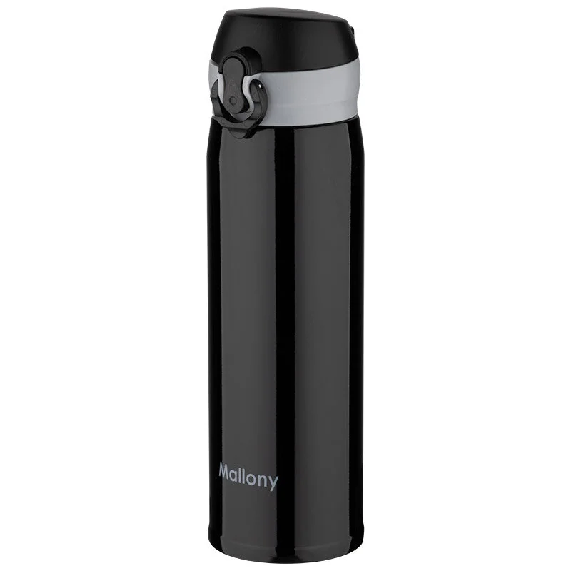 Термокружка Эргономичный дизайн крышки позволяет легко открывать её одной рукой. Термокружка имеет оптимальный размер. Её удобно держать в руке. Плотно закрывающаяся крышка позволит надолго сохранить температуру напитка, специальный фиксатор не позволит крышке случайно открыться. Емкость: 450 мл Двойные вакуумные стенки из нержавеющей стали Материал: нержавеющая сталь (201), силикон, полипропилен Индивидуальная упаковка: цветная коробка + пакет
