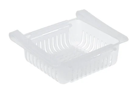 Полка ПОДВЕСНАЯ в ХОЛОДИЛЬНИК раздвижная, пластик 20,5-28,5*16,5*7,5 см, прозрачная 17600