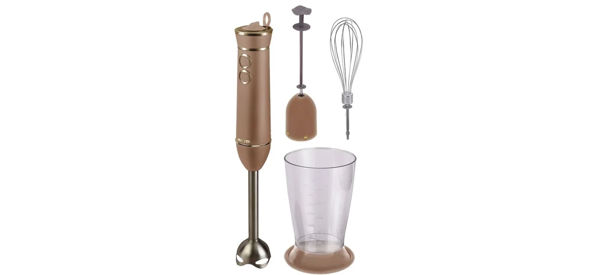 Мощный блендер с плавной регулировкой скорости. Выполнен в корпусе с силиконовым покрытием soft touch и хромированными вставками. Приятно держать в руке, легко работать с густыми продуктами. Уникальная насадка для взбивания молочной пенки в комплекте. Благодаря высокой мощности блендер отлично взбивает и измельчает все необходимые продукты. Обеспечивает удобный контроль и точный подбор скорости вращения насадок. Позволяет добиться идеальной степени измельчения для любого продукта.