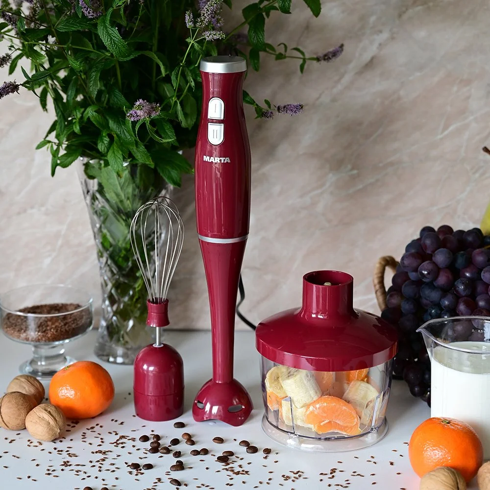Мощный кухонный процессор со съемным пластиковым блендером позволяет легко смешивать, измельчать и взбивать продукты, добиваясь их однородности и нужной консистенции.