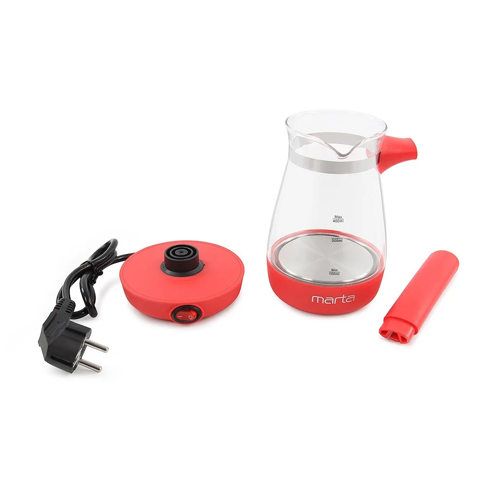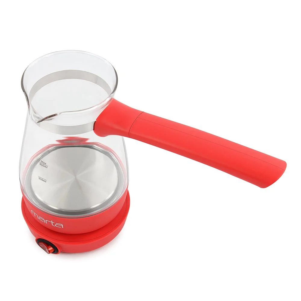 Благодаря объемной колбе можно приготовить сразу несколько порций напиткаПитание от базы обеспечивает мобильность и компактность прибора, дно турки при этом не нагревается и ее можно ставить на любую поверхность
