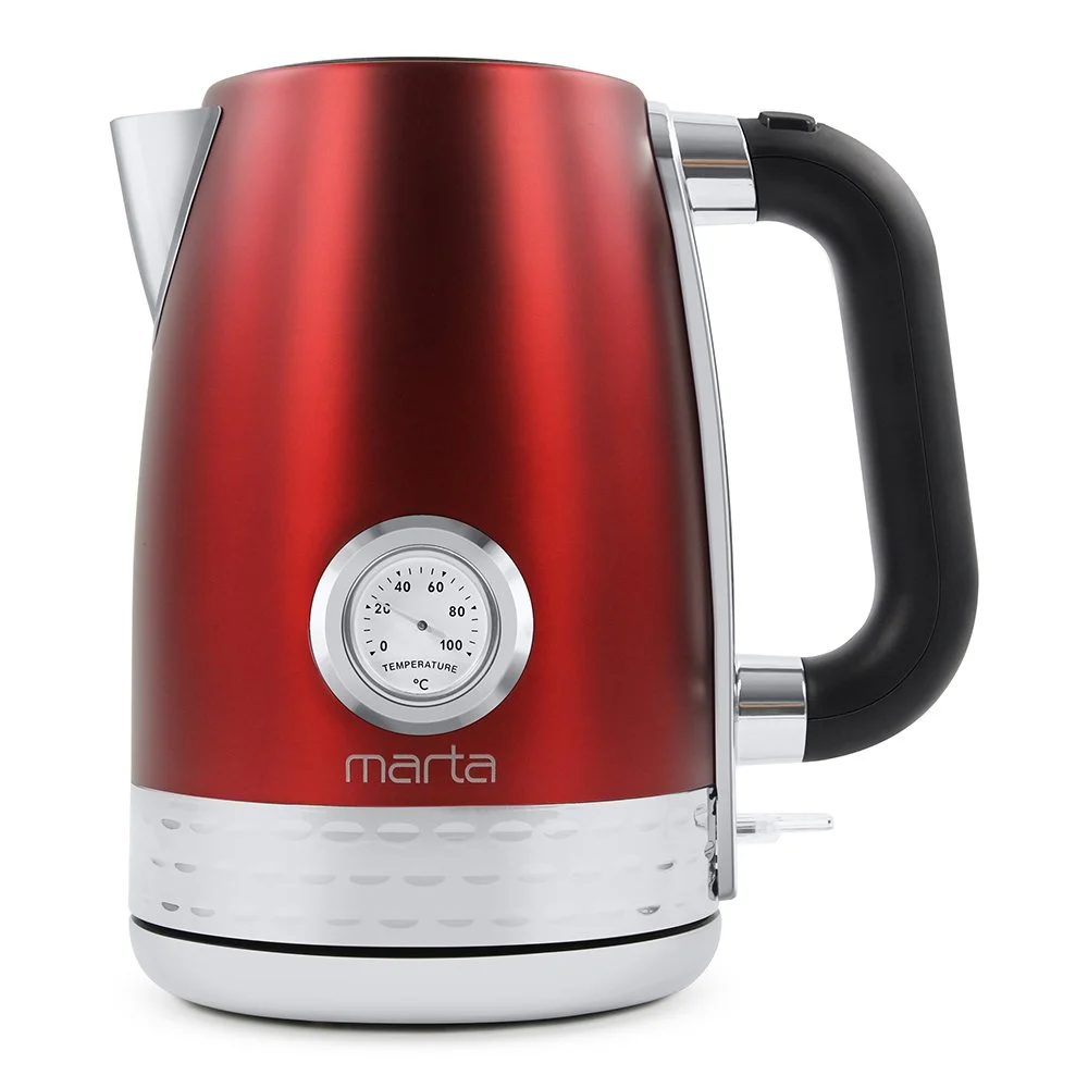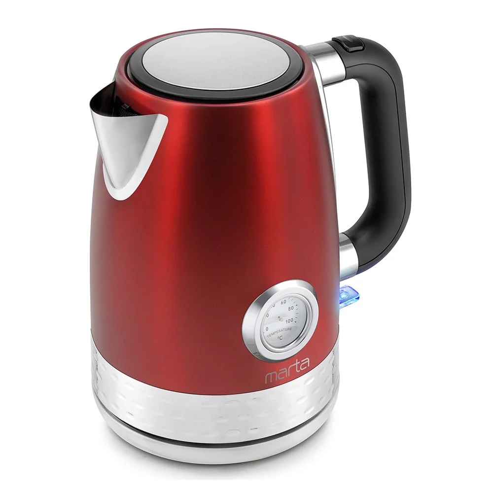 Вместительный металлический чайник объемом 1.8 литра из высококачественной нержавеющей стали. Пищевая нержавеющая сталь способствует сохранению природного вкуса и натуральных свойств воды. Для быстрого закипания чайник оснащен нагревательным элементом мощностью 2,2 к Ватт, защищенного плоским стальным дном для равномерности нагрева, противостояния накипи, коррозии и для большего удобства в уходе. Система автоматического отключения при закипании или недостаточном количестве воды заметно продлит срок работы чайника. Встроенный в чайник индикатор температуры позволяет контролировать текущую температуру воды. Чайник оснащен базой питания, позволяющей брать его с любой стороны или вращать на 360 градусов, что делает прибор совершенно безопасным, а его эксплуатацию комфортной.Особенности