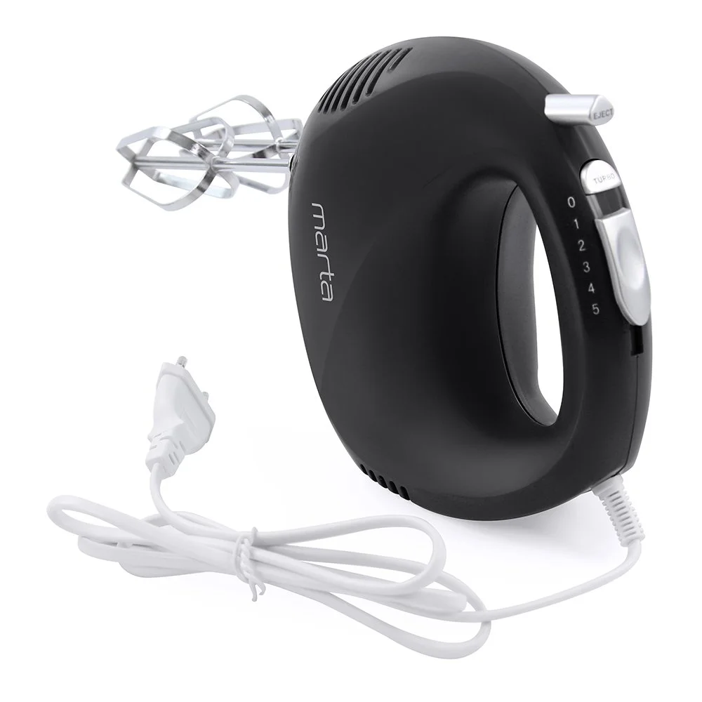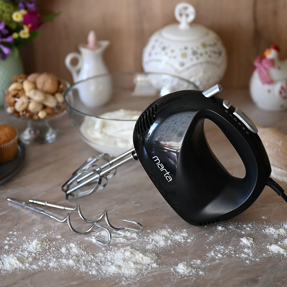 Компактный миксер с 5 скоростными режимами и 2 комплектами насадок подходит для смешивания жидкостей, взбивания яиц или крема, приготовления пюре. Крючками можно замесить тесто для любимой выпечки. Миксер удобен и прост в использовании, имеет эргономичный дизайн корпуса, выполненного из высококачественного пластика. 5 скоростных режимов и дополнительная функция ТУРБО позволят выбрать оптимальную скорость вращения насадок для любого продукта. Кнопка извлечения насадок упрощает уход за миксером после окончания работы. Миксер легко впишется в дизайн любой кухни, не занимая много места, но при этом оставаясь всегда под рукой.