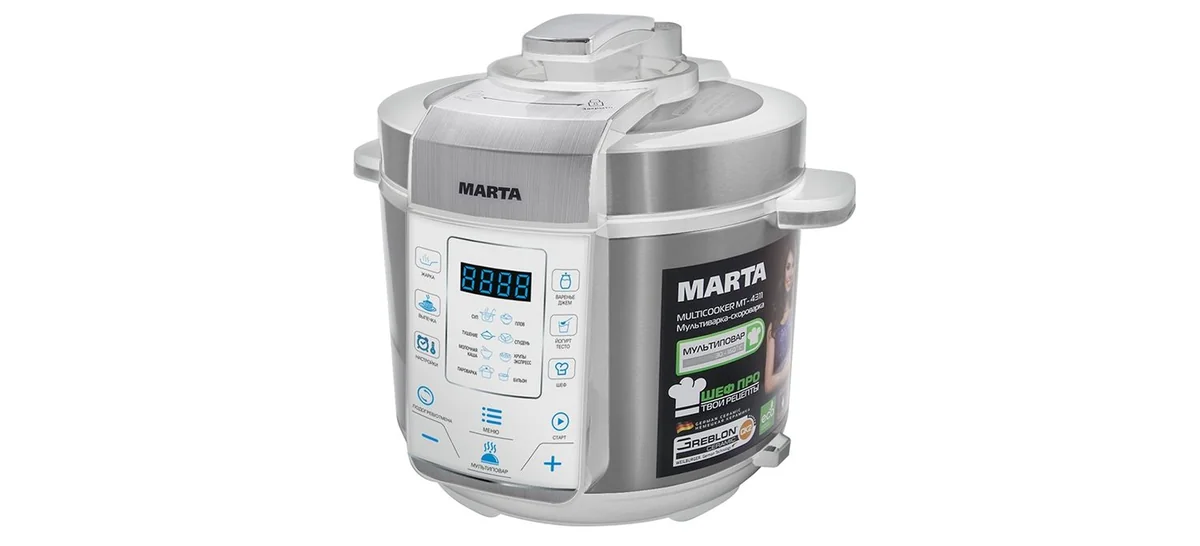 Мультиварка- скороварка MARTA MT 4311 белый/сталь