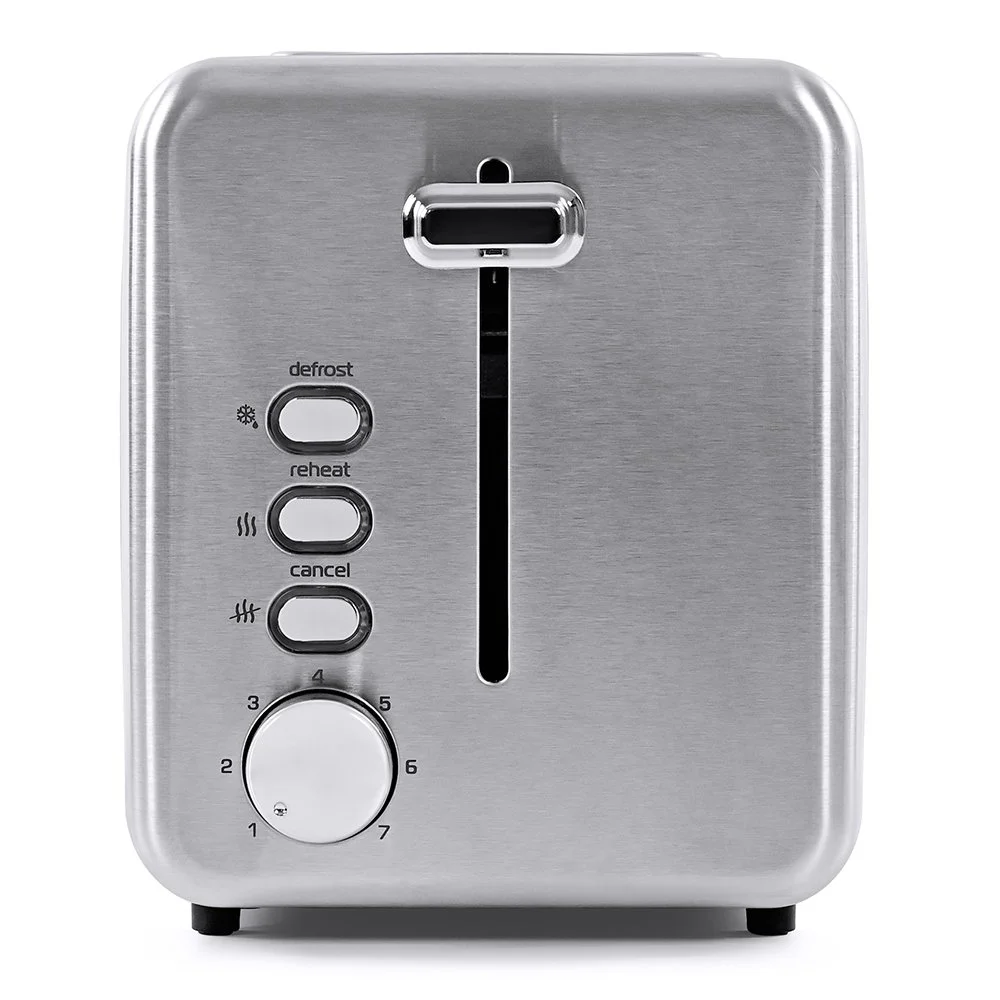 Тостер в корпусе из нержавеющей стали, 7 режимами работы и плавной регулировкой мощности, функциями разогрева, размораживания и отмены.