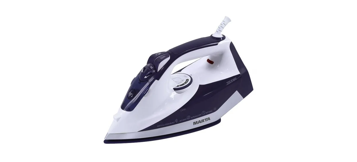 Мощный утюг с удобными большими клавишами на ручке для отпаривания и разбрызгивания воды.