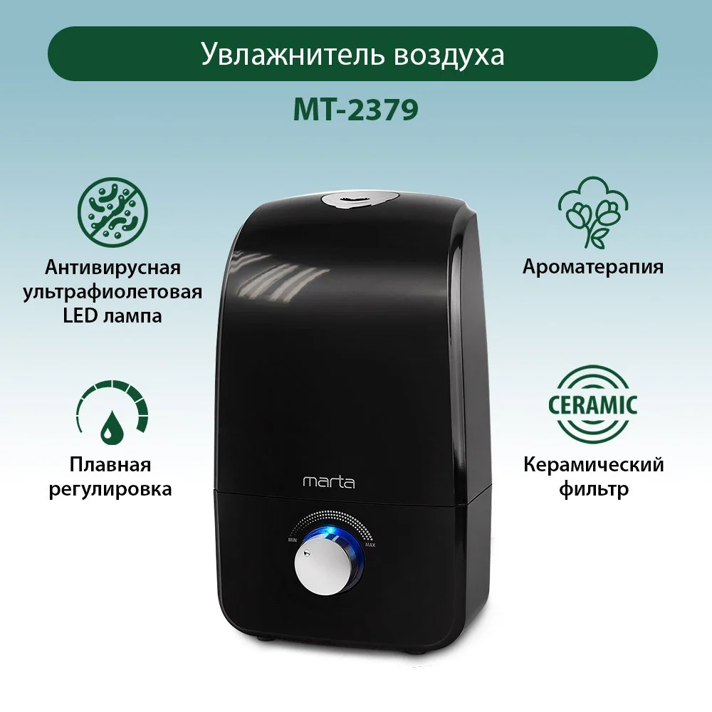 Воздухозаборный отсек имеет фильтрующий картридж. Сетка картриджа содержит активированный уголь, задерживает находящуюся в воздухе пыль и очищает его. Очищенный воздух смешивается с мелкодисперсным водяным паром, увлажняя помещение. Фильтр обслуживаемый, его можно помыть и использовать снова.