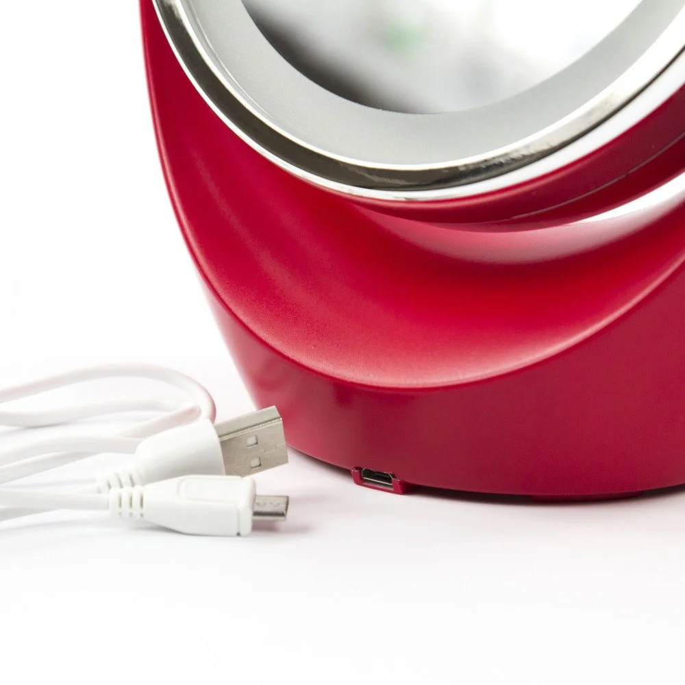 Стильное и элегантное настольное зеркало с подсветкой и десятикратным увеличением отражения одной из поверхностей. Идеально подходит для тщательного нанесения макияжа и ухода за кожей лица. Зеркало позволяет изменять угол наклона для достижения максимального удобства, а также имеет две зеркальные стороны, одна из которых обладает свойством десятикратного увеличения отражения, что особенно важно при кропотливой работе с участками лица, требующими наиболее тщательного внимания. Круговая подсветка по контуру зеркала нормализует и выравнивает освещение, позволяя детально разглядеть все нюансы отражения. Встроенный литиево-ионный аккумулятор обеспечит длительную работу светодиодной подсветки зеркала (до 5 часов). Удобная зарядка аккумулятора с помощью USB-кабеля позволяет заряжать его, как от зарядного устройства, так и от USB-порта любого компьютера или ноутбука. Простота использования и очистки, функциональность, сопровождающаяся особым комфортом, делают настольное зеркало незаменимым аксессуаром для ухода за лицом и в домашних условиях, и в путешествии.