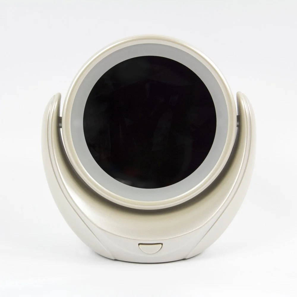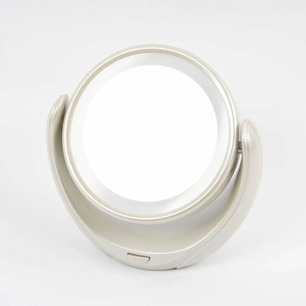 Стильное и элегантное настольное зеркало с подсветкой и пятикратным увеличением отражения одной из поверхностей. Идеально подходит для тщательного нанесения макияжа и ухода за кожей лица.