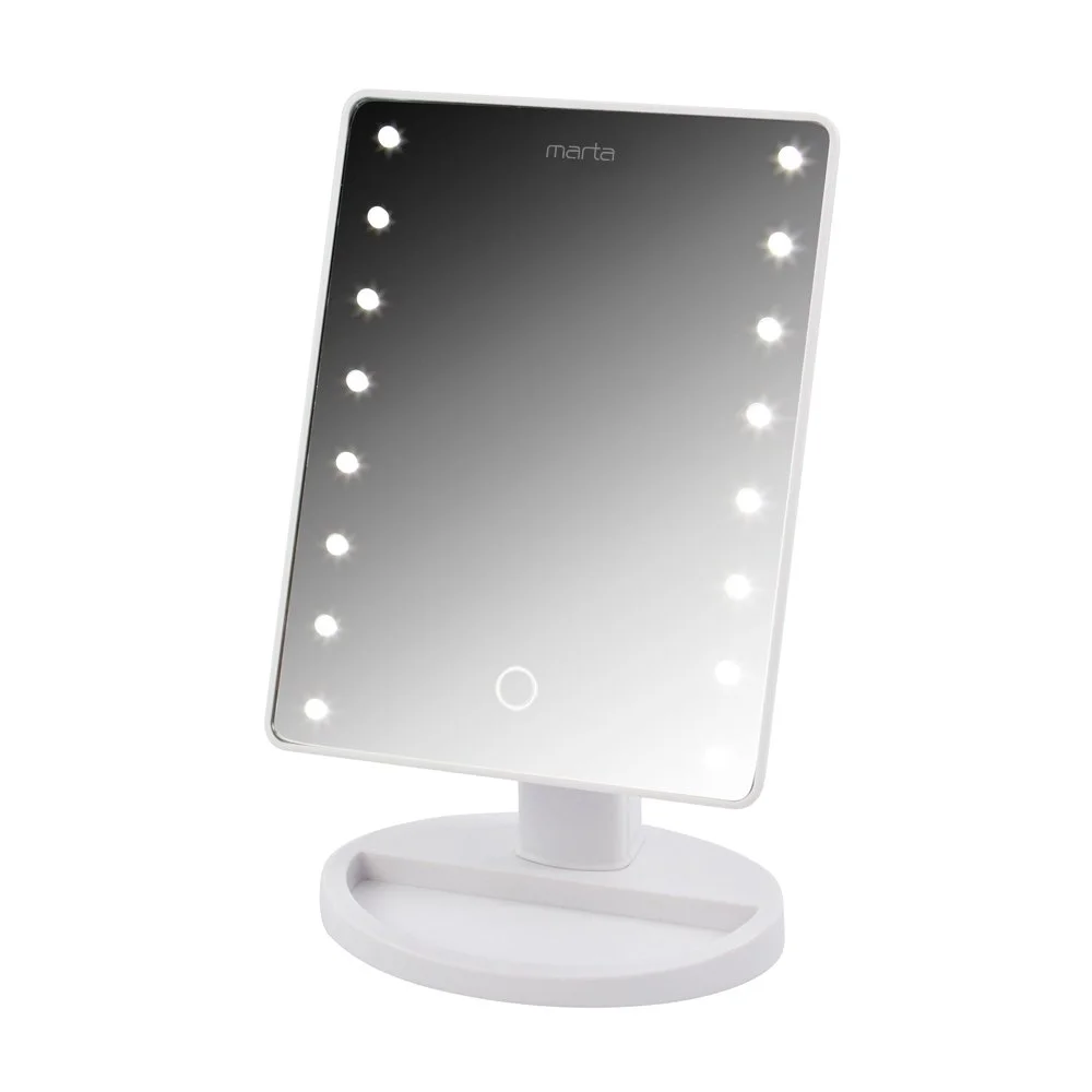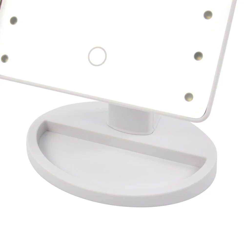 Стильное и элегантное настольное зеркало с подсветкой из шестнадцати светодиодов идеально подходит для тщательного нанесения макияжа и ухода за кожей лица.