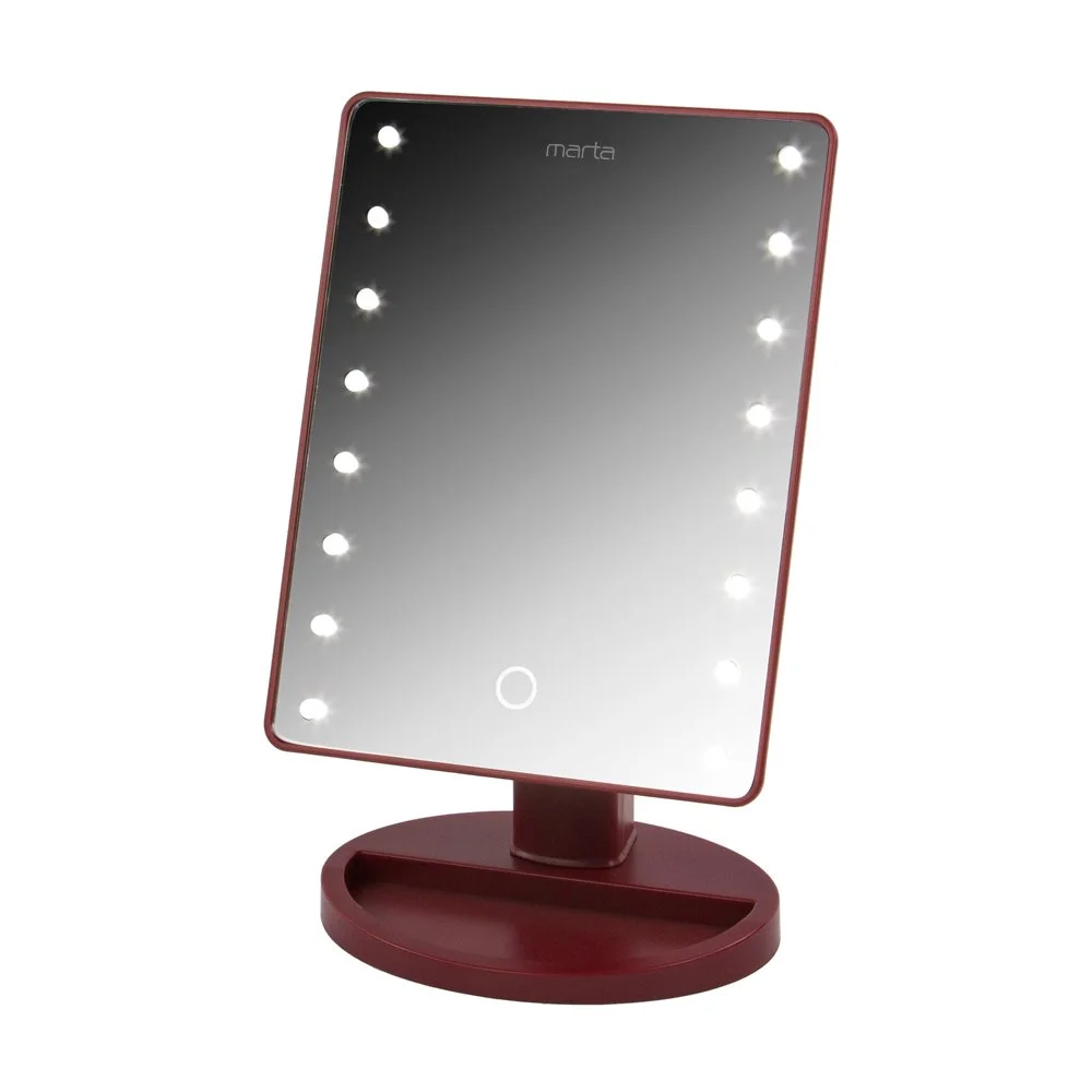 Стильное и элегантное настольное зеркало с подсветкой из шестнадцати светодиодов идеально подходит для тщательного нанесения макияжа и ухода за кожей лица.