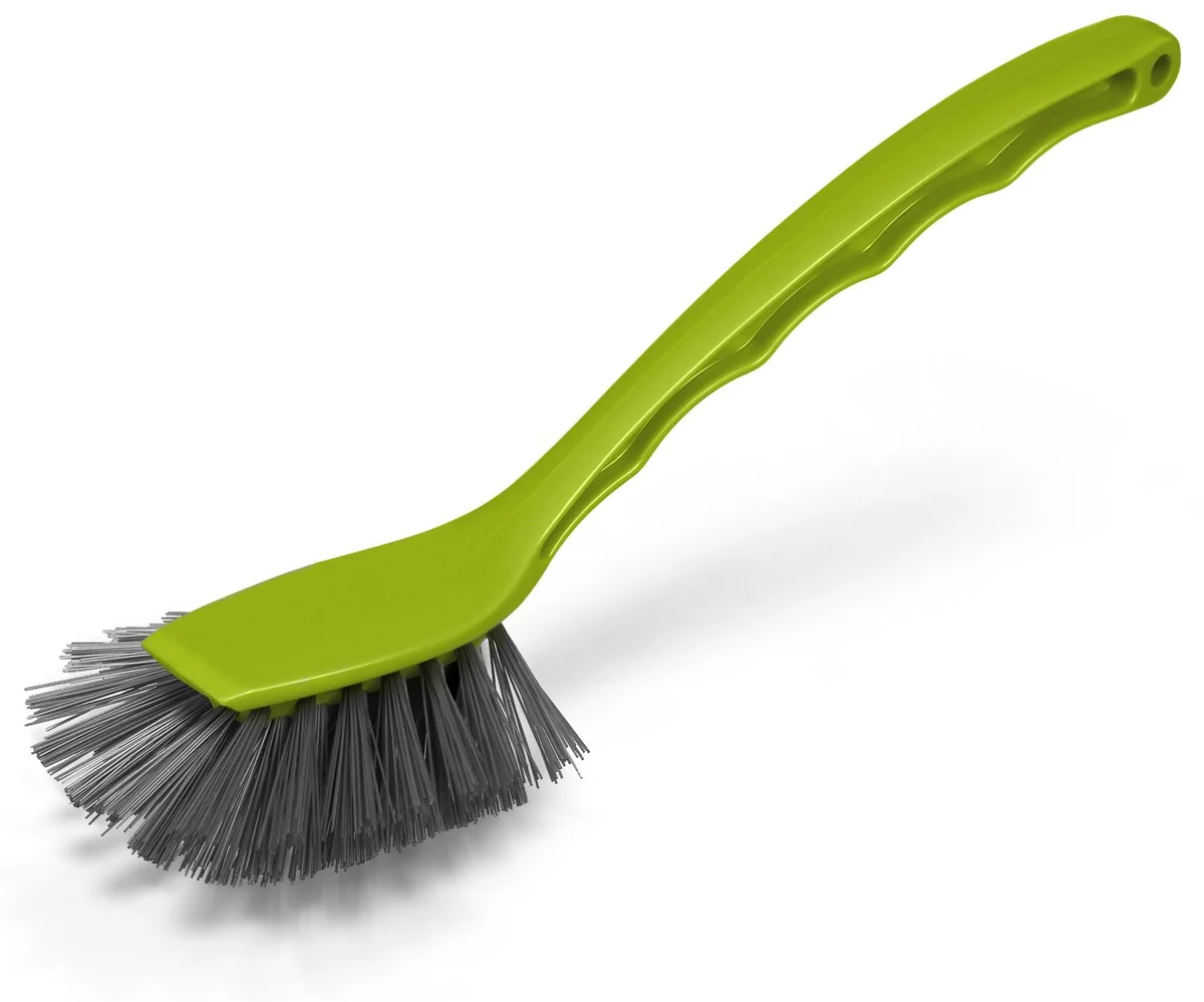 Позволяет очищать разнообразные загрязнения от мытья посуды до очистки кастрюль и других емкостей. Эргономичная ручка позволяет использовать ее для мытья труднодоступных мест. Изделие имеет жесткую щетину, что позволяет эффективно справляться с загрязнениями.