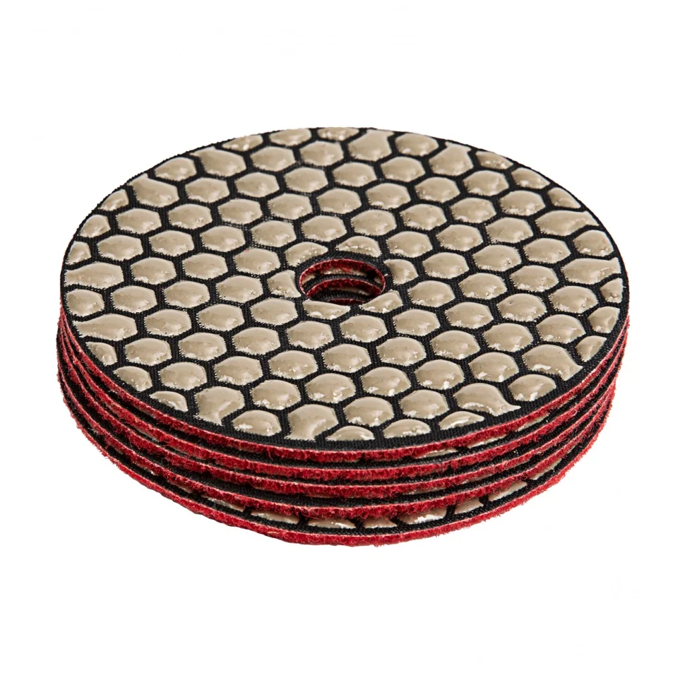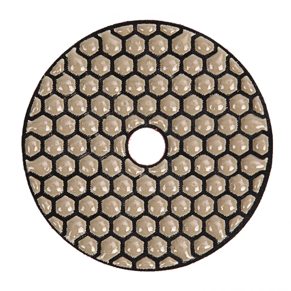 Алмазный гибкий шлифовальный круг Matrix 73506 диаметром 100 мм, с зернистостью P 3000, 5 шт. в упаковке, предназначен для сухого шлифования гранита, мрамора, природного и искусственного камня, керамогранита. Используется на поверхностях разного цвета, в том числе черных. Абразив с зернистостью P 3000 применяется для финишного полирования, позволяет добиться глянцевого блеска материалов. Гибкость круга упрощает обработку предметов сложной формы. Круг используется на УШМ с установленной опорной тарелкой для АГШК.ПреимуществаРабочая поверхность отличается высокой концентраций алмазов, а в качестве связки использован качественный термопластик, благодаря чему круг устойчив к износу и высоким температурам, обладает высоким рабочим ресурсом.Рабочая поверхность состоит из круглых сегментов с промежутками между ними - «черепашка» обеспечивает эффективный отвод шлама в процессе шлифовки без применения охлаждающей жидкости.Система крепления velcro позволяет моментально закрепить круг на липучке опорной тарелки.В упаковке 5 штук, которых хватит для выполнения большого объема работ.