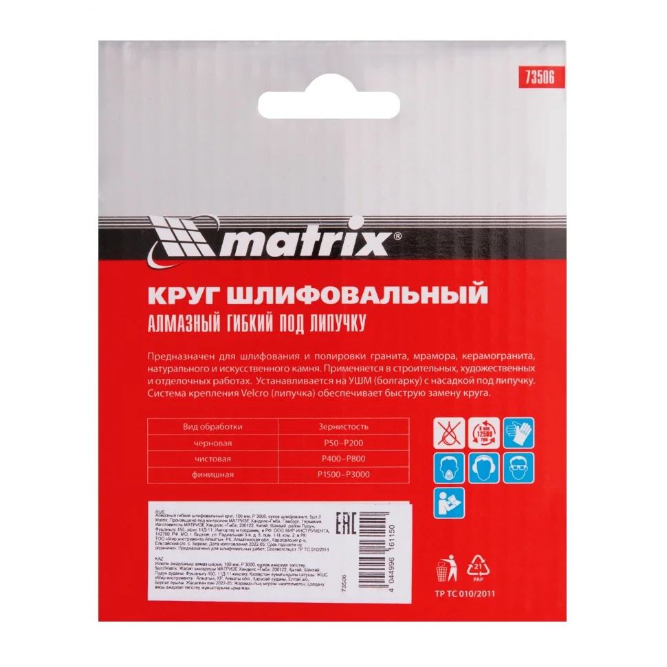 Алмазный гибкий шлифовальный круг, 100 мм, P3000, сухое шлифование, 5 шт. Matrix 73506