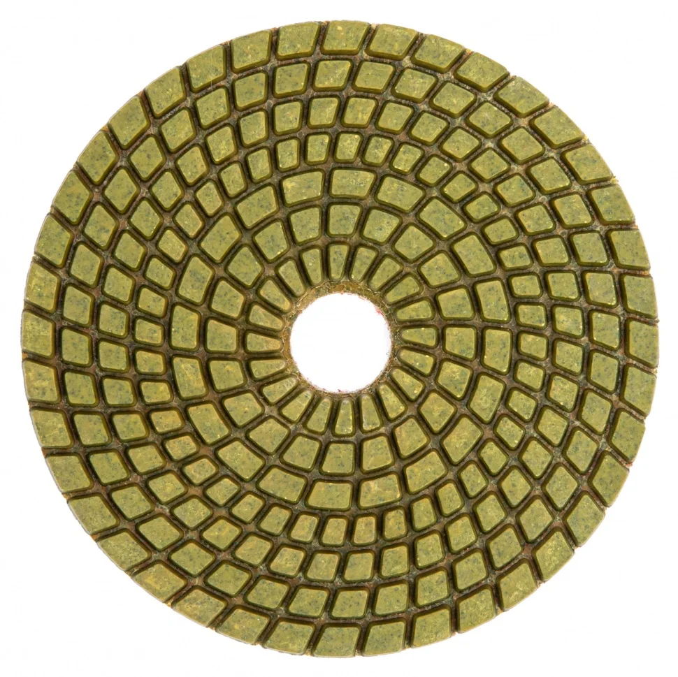 Алмазный гибкий шлифовальный круг Matrix 73507 диаметром 100 мм, с зернистостью P 50, 5 шт. в упаковке, предназначен для мокрого шлифования и используется при проведении строительных, отделочных и художественных работ. Абразив зернистостью P 50 позволяет проводить черновую обработку гранитных, каменных, керамогранитных и мраморных поверхностей. Рабочая часть выполнена из светло-зеленого термопластика с алмазным напылением и подходит для использования на цветных и черных материалах. Гибкая основа круга облегчает шлифовку рельефных элементов. Круг используется на УШМ с установленной опорной тарелкой для АГШК.ПреимуществаВысокий рабочий ресурс - в качестве абразива использованы алмазные частицы плотной концентрации, а связкой является устойчивый к трению и нагреву термопластик.Эффективное удаление шлама - на рабочей поверхности имеется большое количество бороздок, благодаря которым она не забивается продуктами шлифования.Быстрая фиксация и замена круга - крепление под липучку позволяет мгновенно закреплять его на опорной тарелке.Удобная комплектация - круги поставляются наборами по 5 штук, которых хватит надолго.