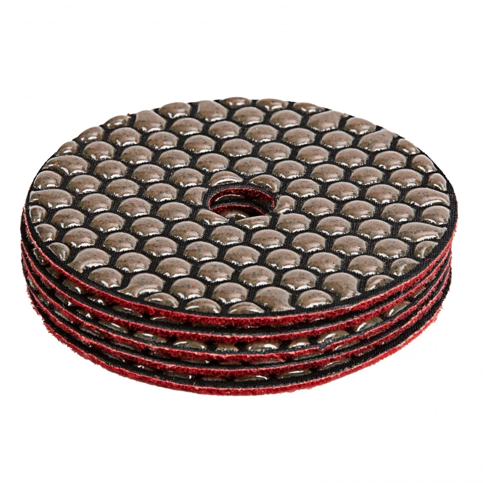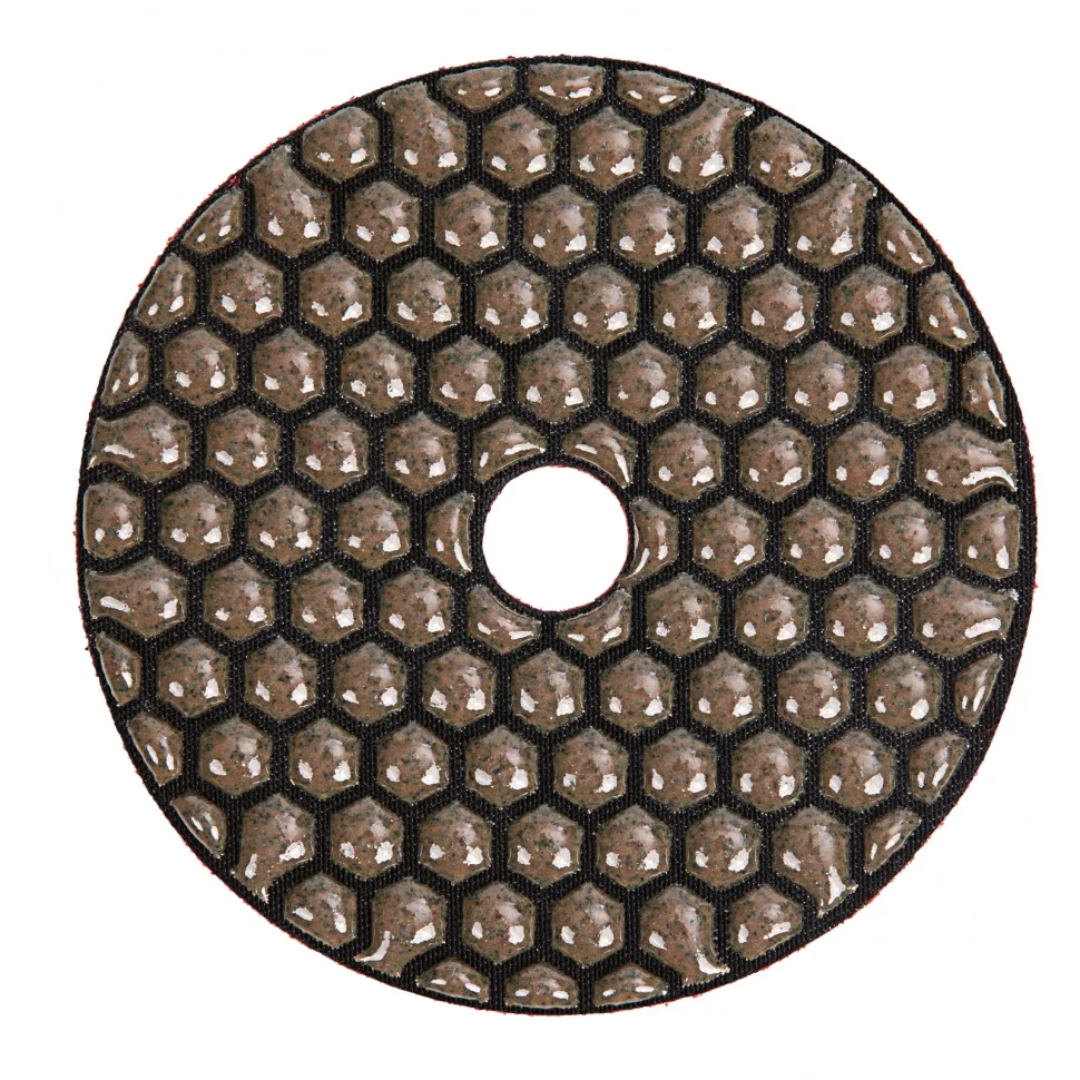 Алмазный гибкий шлифовальный круг Matrix 73500 диаметром 100 мм, с зернистостью P 50, 5 шт. в упаковке, предназначен для сухого шлифования преимущественно цветных и черных поверхностей из гранита, мрамора, природного и искусственного камня, керамогранита. Абразив с зернистостью P 50 снимает большой слой материала и используется для черновой шлифовки. Гибкость круга упрощает обработку предметов сложной формы. Круг используется на УШМ с установленной опорной тарелкой для АГШК.ПреимуществаРабочая поверхность отличается высокой концентраций алмазов, а в качестве связки использован качественный термопластик, благодаря чему круг устойчив к износу и высоким температурам, обладает высоким рабочим ресурсом.Рабочая поверхность состоит из круглых сегментов с промежутками между ними - «черепашка» обеспечивает эффективный отвод шлама в процессе шлифовки без применения охлаждающей жидкости.Система крепления velcro позволяет моментально закрепить круг на липучке опорной тарелки.В упаковке 5 штук, которых хватит для выполнения большого объема работ.