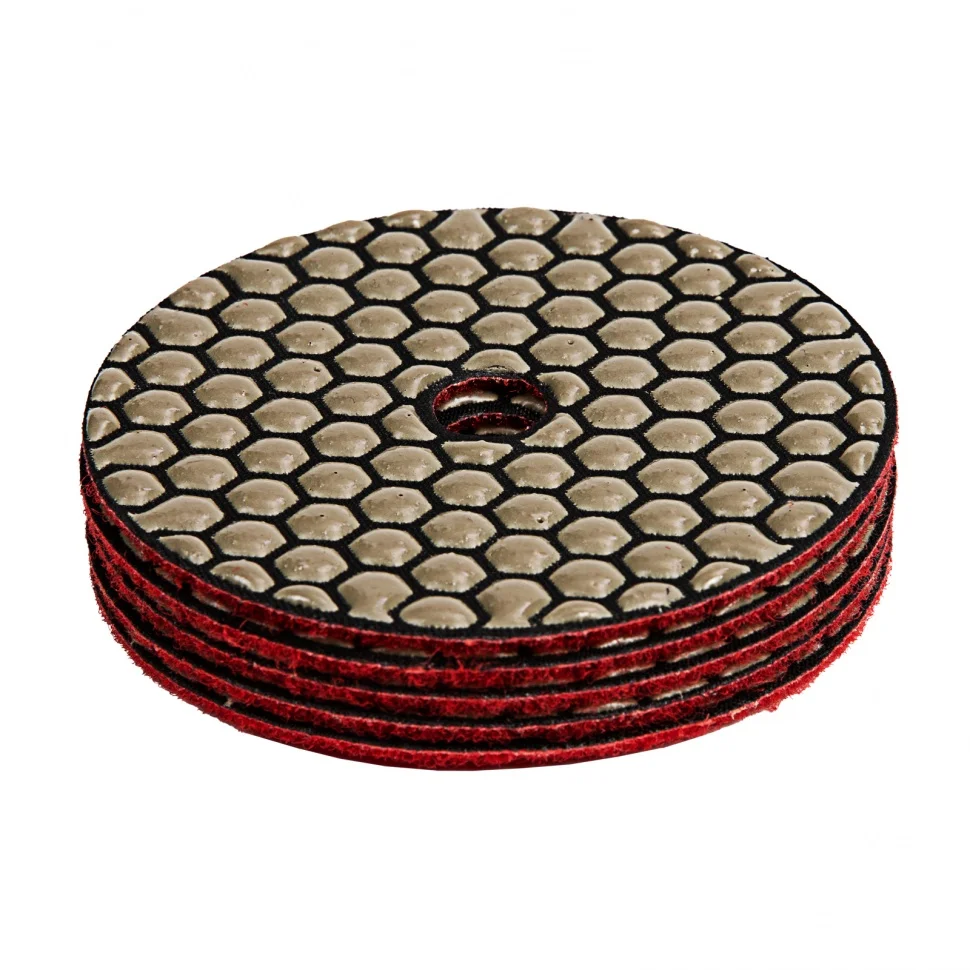 Алмазный гибкий шлифовальный круг Matrix 73504 диаметром 100 мм, с зернистостью P 800, 5 шт. в упаковке, предназначен для сухого шлифования гранита, мрамора, природного и искусственного камня, керамогранита. Используется на преимущественно на цветных и черных поверхностях. Абразив с зернистостью P 800 снимает тонкий слой материала и применяется для чистового шлифования. Гибкость круга упрощает обработку предметов сложной формы. Круг используется на УШМ с установленной опорной тарелкой для АГШК.ПреимуществаРабочая поверхность отличается высокой концентраций алмазов, а в качестве связки использован качественный термопластик, благодаря чему круг устойчив к износу и высоким температурам, обладает высоким рабочим ресурсом.Рабочая поверхность состоит из круглых сегментов с промежутками между ними - «черепашка» обеспечивает эффективный отвод шлама в процессе шлифовки без применения охлаждающей жидкости.Система крепления velcro позволяет моментально закрепить круг на липучке опорной тарелки.В упаковке 5 штук, которых хватит для выполнения большого объема работ.
